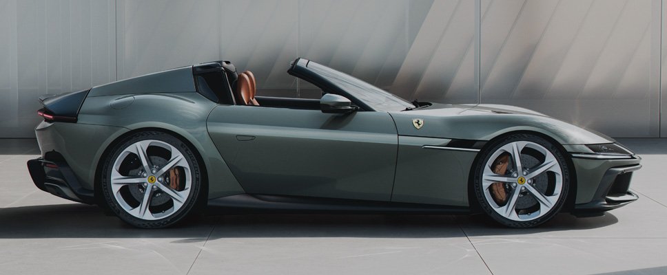 A striking V12 Spider in Verde Toscana green, delivering exhilarating performance, open-top driving excitement, and timeless Italian elegance with Ferrari’s legendary craftsmanship.